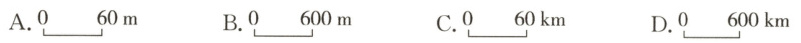 3. (学科融合)保护生物多样性就是保护我们自己,这是全人类共同的话题。为了探究校园生物分布情况,在校园生物大搜索的活动中,同学们需要画出学校平面图。下面的比例尺中,选用( )的比例尺,画出来的学校平面图最大。
