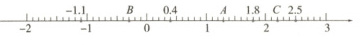 2. 在上图中标出-1.1、0.4、1.8和2.5,并把这几个数按要求排序。