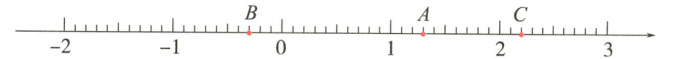 1. 上图中A、B、C三点表示的数分别是( )、( )、( ),其中最接近0的是点( )。