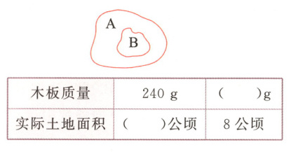(3)如果当时将同一块木板上的另一块不规则的图形锯下来后,称得木板质量为105g,那么这块不规则图形的实际土地面积是多少公顷?