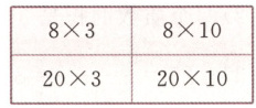 (2)(算理理解)笔算乘法和口算乘法都是先分后合的过程,下面的算式( )可以用右表表示。