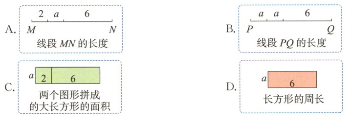 2.(济南历城真题)针对2a + 6这个式子,四位同学分别画图表示自己的理解。下面选项正确的是( )。
