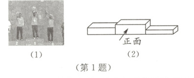 1.[情境创新类问题](2023.吉林中考)图(1)是2023年6月11日吉林市全程马拉松男子组颁奖现场.图(2)是领奖台的示意图,则此领奖台的主视图是( ).