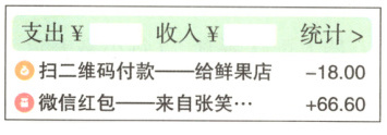 (2)右图是李老师2月1日当天的微信账单的一部分。
