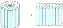(1)如图,把一个底面半径是3cm,高是5cm的圆柱沿底面半径平均分成若干份,拼成一个近似的长方体,这个长方体的长是( )cm,宽是( )cm,高是( )cm,体积是( )cm³,长方体的表面积比圆柱的表面积大( )cm²。