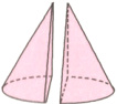 4.如图,将一块圆锥形木料沿着高垂直于底面切成两半,表面积比原来增加了36cm²,测得圆锥形木料的高是9cm。原来这块圆锥形木料的体积是多少立方厘米?