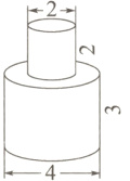 2. 有一种铁质零件(如图),外形是圆柱,底面直径是4 cm,高是5 cm,零件正中间打穿一个边长为2 cm的正方形孔。