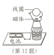 12. (2022·江西中考)如图所示是某同学在科技节上展示的作品结构图。该作品的工作原理是通电线圈在________中受力转动,它就是一个自制的________机模型图。