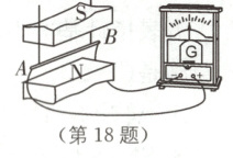 18. 小勇利用如图所示的实验装置“探究导体在磁场中运动时产生感应电流的条件”,他将实验中观察到的现象记录在下表中。