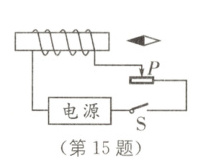 15.如图所示,闭合开关S,通电螺线管右侧的小磁针静止时,小磁针的N极指向左,则电源的右端为________极,若使通电螺线管的磁性减弱,滑动变阻器的滑片P应向________端移动。