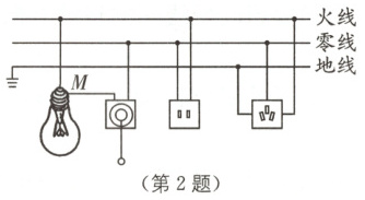 2. 如图是某同学设计的家庭电路,电灯开关已断开. 下列说法中正确的是( ).