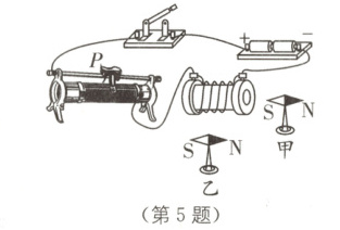 5. 在探究“通电螺线管外部磁场分布”的实验中,开关断开时小磁针甲、乙的指向如图所示。当开关闭合时,通电螺线管有磁性,则下列说法中正确的是( )。