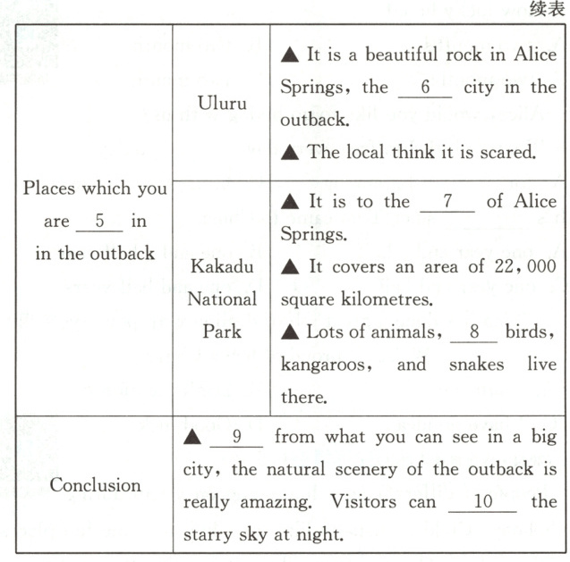Alice Springs is the biggest city in the outback. Many people go to Alice Springs to see Uluru(乌鲁鲁巨石)—it is a beautiful rock that is sacred(神圣的) to Aboriginals(土著) in the area.