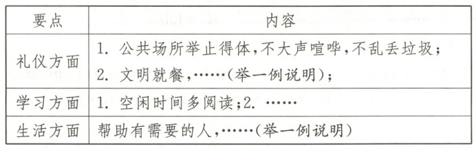 第一步,公共场合礼仪方面的要求。第二步,学习所需要的优良品质。第三步,生活中的一些品质,可举例说明。