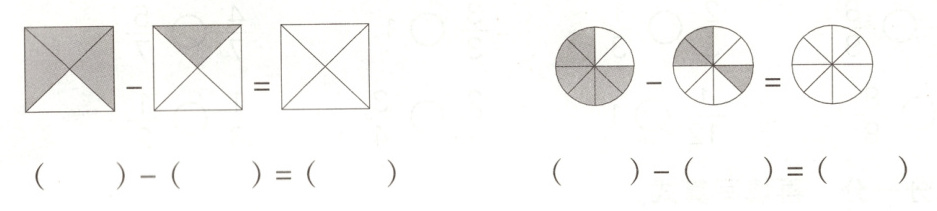 $\frac{3}{4}-\frac{1}{4}=\frac{2}{4}$ $\frac{6}{8}-\frac{3}{8}=\frac{3}{8}$