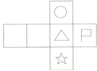 6. 下面3个正方体中,展开后可能得到右图的是( )。