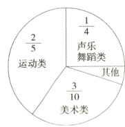1. 五(1)班同学利用假期参加各种兴趣班情况如右图。参加运动类和声乐舞蹈类的人数占全班人数的( );参加美术类和声乐舞蹈类的人数是全班人数的( );参加运动类的人比参加美术类的人多( );参加其他类的人数占全班人数的( )。