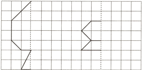(2)根据对称轴,分别画出下面两个轴对称图形的另一半。