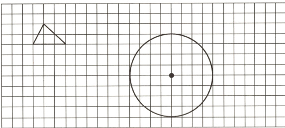 请按2:1画出三角形放大后的图形,按1:2画出圆缩小后的图形。