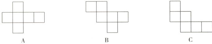4. 下面三个图形中,( )不是正方体的表面展开图。