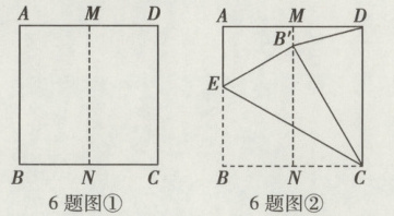 6. 把正方形ABCD对折,得到折痕MN(如图①),展开后把正方形ABCD沿CE折叠,使点B落在MN上的点B'处,连接B'D(如图②).试求∠BCB'及∠ADB'的度数.