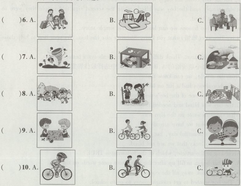 第二节 听下面五段短对话,从每小题所给的A、B、C三幅图片中选择与听到的信息相关联的一项。每段对话读两遍。