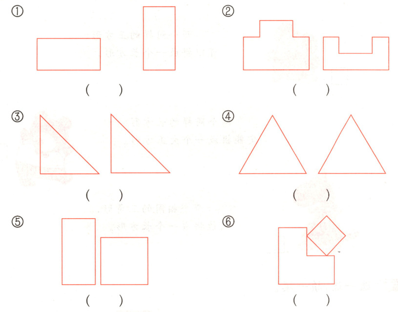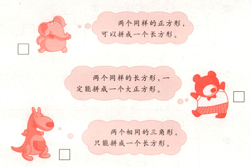 下面的图形中,哪几组能拼成一个正方形?能拼成一个正方形的,在( )里打“√”,否则打“×”。