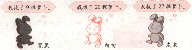 ②灰灰比黑黑多拔了多少棵萝卜?