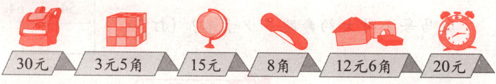②例如:魔方和闹钟 3元5角 + 20元 = 23元5角 (本题答案不唯一)