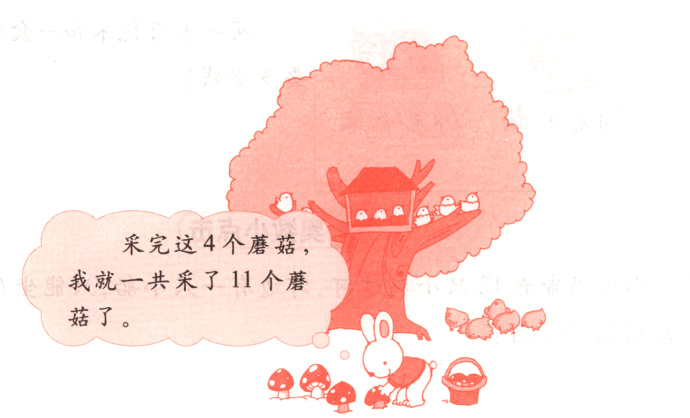 ②小兔的篮子中有多少个蘑菇?