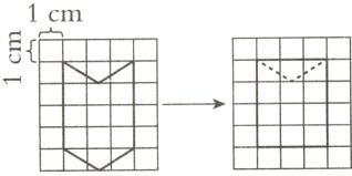 3. 右图中,把下面的三角形剪下来,向( )平移( )格,原图形变成了一个长方形,长方形的面积是( )$cm^{2}$,所以原图形的面积是( )$cm^{2}$。