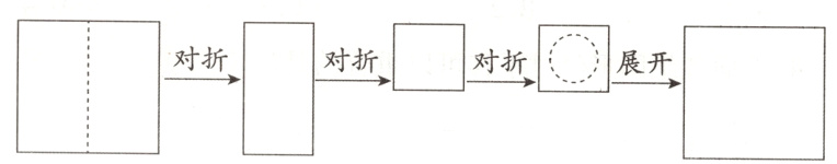 4. 如下图,小明将一张正方形纸先左右对折,再上下对折,然后在中间挖去一个圆。请你将展开图画出来。(6分)