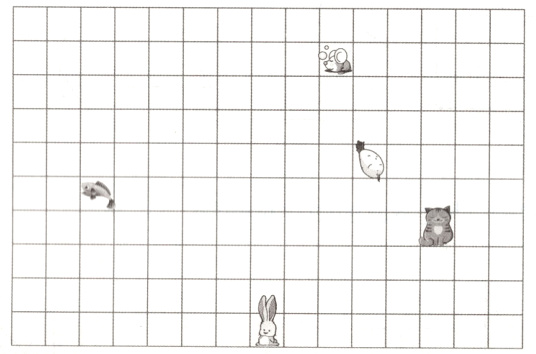 (3)老鼠向( )平移( )格,再向( )平移( )格,就能吃到鱼。