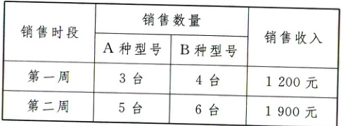23.(本题13分)某电器超市销售每台进价分别为160元、120元的A,B两种型号的电风扇,下表是近两周的销售情况: