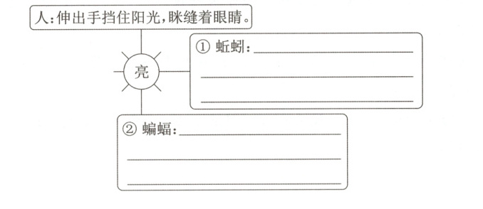 (1) ① 蜷缩着身体,不敢钻出地面。 ② 倒挂在洞里,把头埋在翅膀里,躲着不出来。