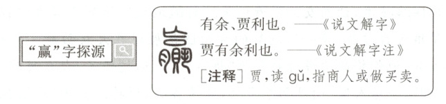 经商获得利益 这样解释挺有意思的,从另一个层面展现了人们想要“赢”应具备的素质,体现了汉字文化的博大精深