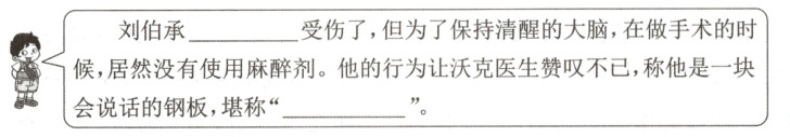 五、古往今来,有多少人物的风采影响着一代代儿童。这几位同学以他们为榜样,表达了自己的崇敬之情。请你根据课文内容来帮他们完成分享吧!(6分)