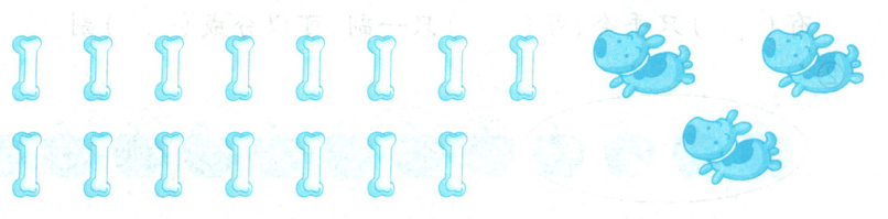 一共有( )根骨头,平均分给3只小狗,每只小狗分( )根。
