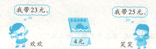 1.① $23\div4 = 5(本)\cdots\cdots3(元)$