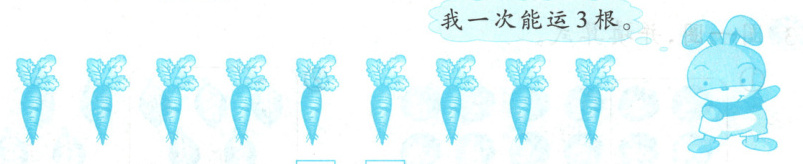 ①平均放在2个篮子里,每个篮子放( )个。□÷□ = □(个)