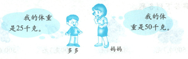 我的体重是25千克。我的体重是50千克。妈妈比多多重多少千克?
