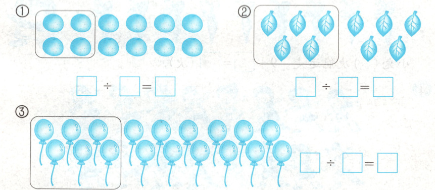 6棵树平均栽成3行,每行有( )棵。□÷□ = □(棵)