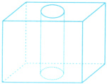 ② 从一个长8cm、宽6cm、高5cm的长方体的上面到底面挖一个直径是3cm的圆柱形孔(如左下图),求剩下部分的体积。