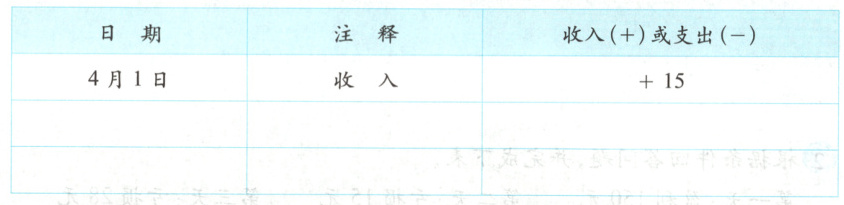 4月1日:爸爸给小华15元的零花钱。