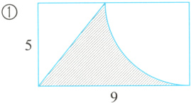 ① $5\times9-\frac{1}{2}\times5\times(9 - 5)-\frac{1}{4}\times5^{2}\times3.14 = 15.375(cm^{2})$② $\frac{1}{2}\times(6 + 10)\times(6\div2)-\frac{1}{2}\times(6\div2)^{2}\times3.14 = 9.87(cm^{2})$