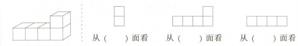 1. 右边的三个图形分别是从什么方向看到的?填一填。