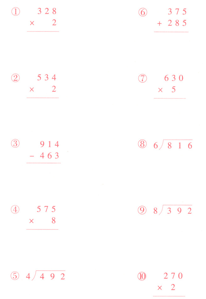 2025年小学生每日10分钟竖式计算卡三年级数学下册苏教版