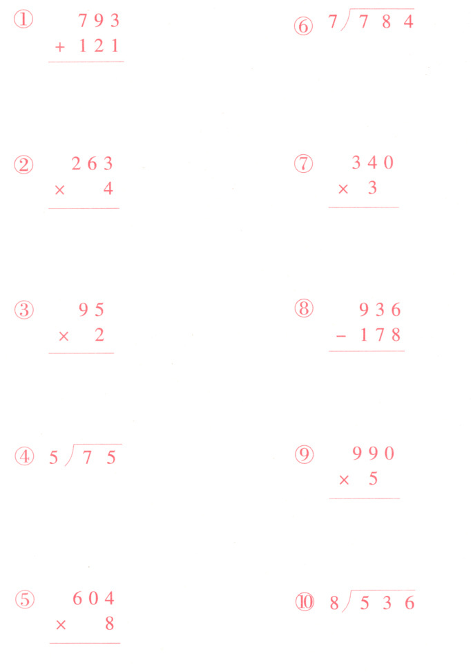 2025年小学生每日10分钟竖式计算卡三年级数学下册苏教版
