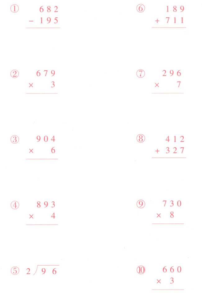 2025年小学生每日10分钟竖式计算卡三年级数学下册苏教版