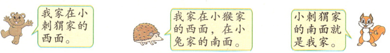 例 小兔、小刺猬、小松鼠、小熊和小猴的家住在同一片树林里。你能根据它们的对话画出小动物家的位置吗?